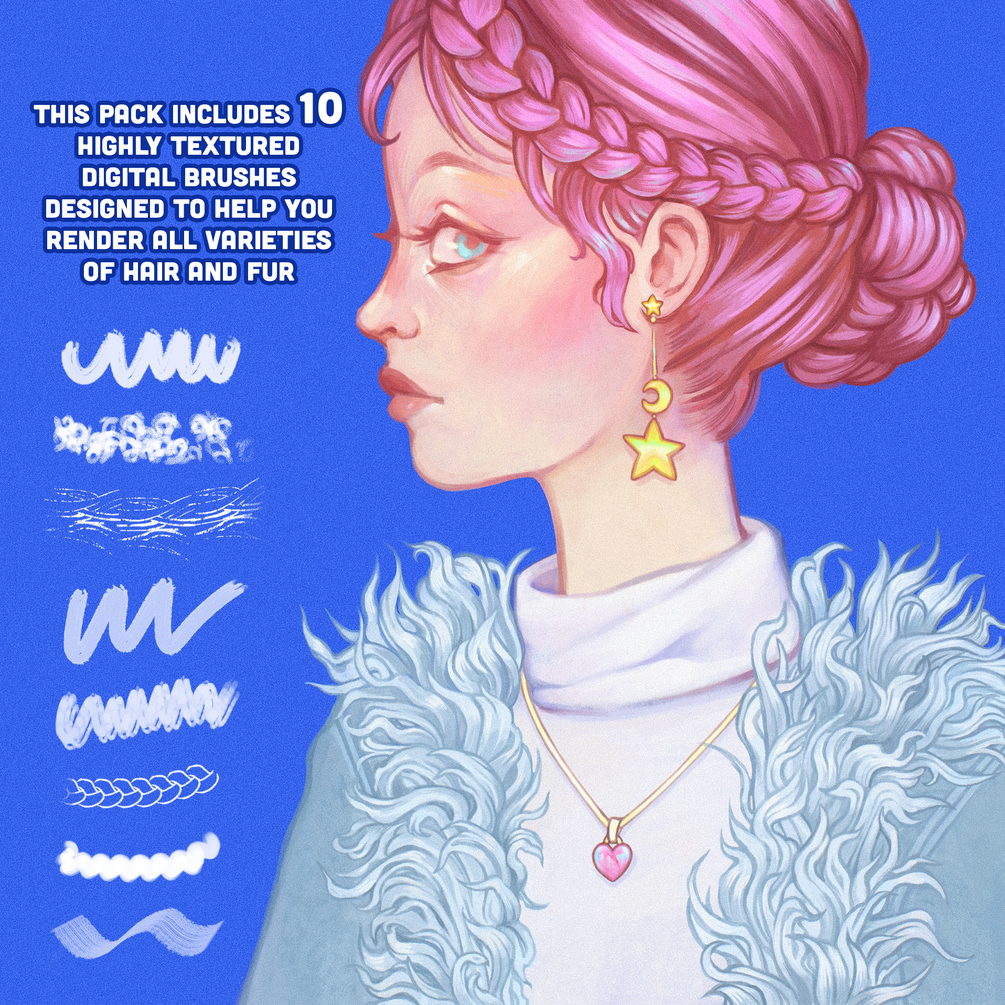 Rendering hair will be a breeze with this set of 10 brushes! These carefully crafted digital brush presets are perfect for sketching, drawing, and rendering hair of all shapes and sizes. Instead of getting tangled in agonizingly tedious texture rendering, these brushes will help you focus on keeping the creativity - and those luscious locks - flowing!