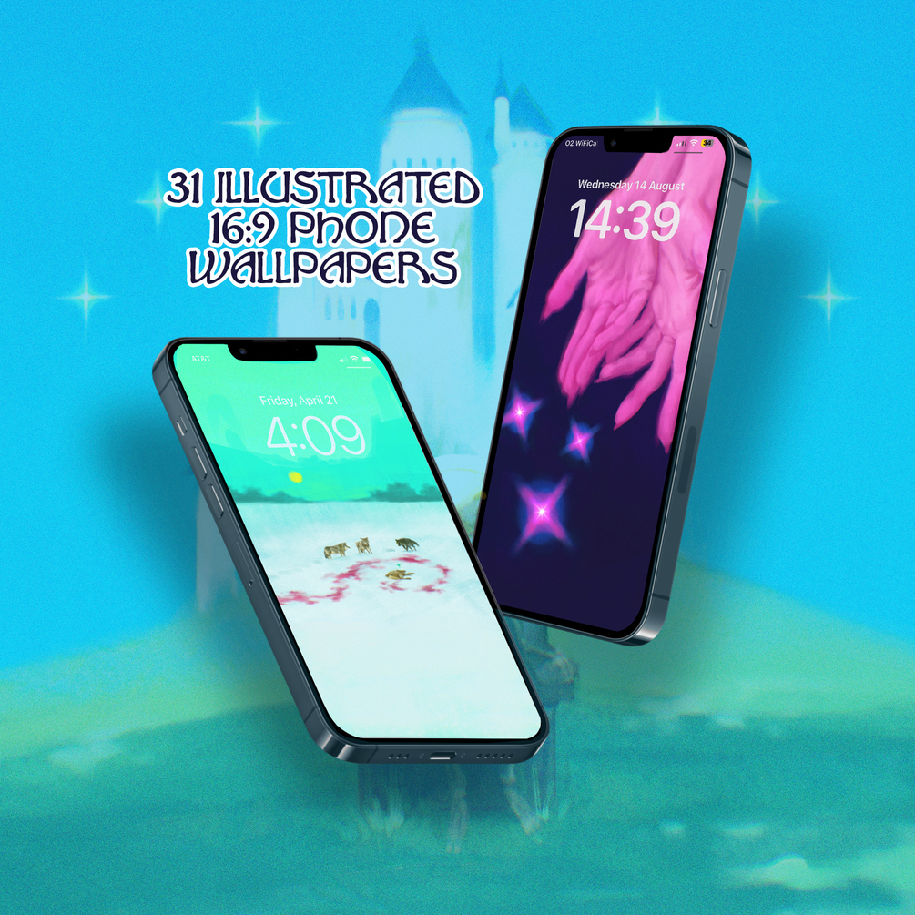 Each illustration was hand-drawn and manually extended/repainted into the wallpaper format. No AI was used at any point during the creative process.